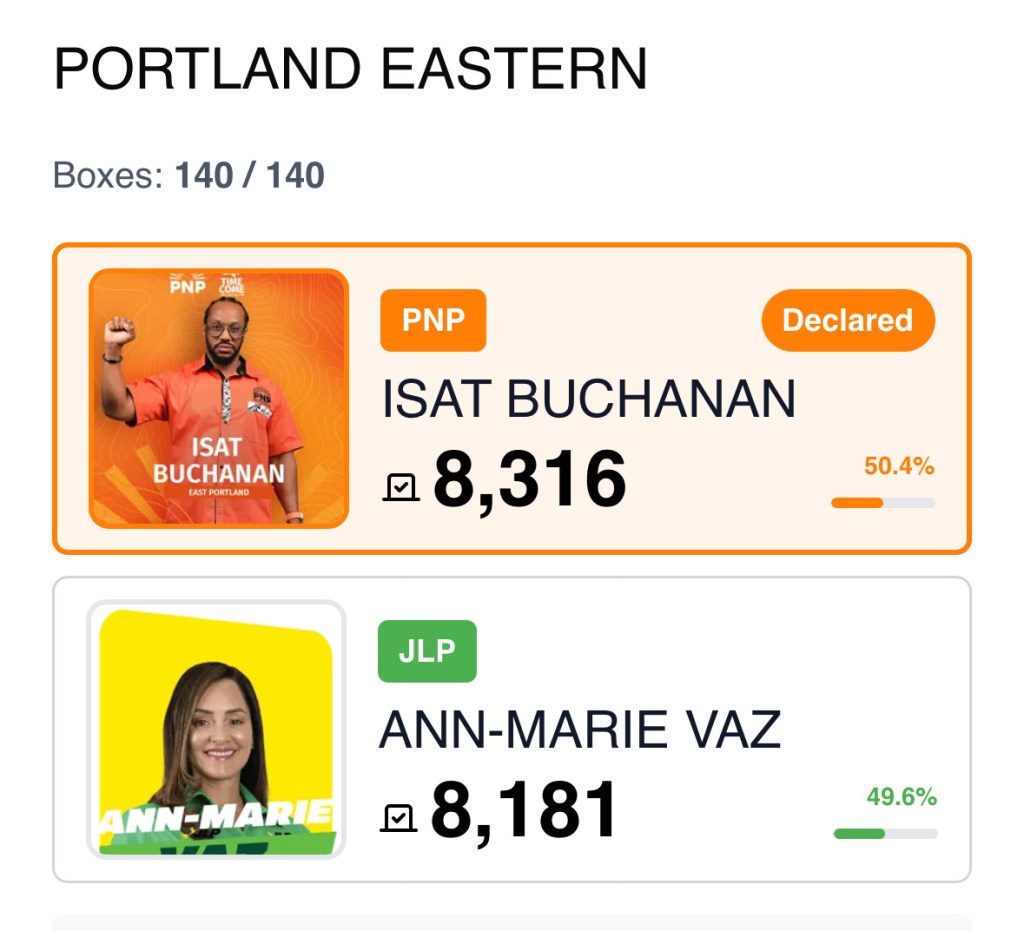 The official election results confirmed the victory for Buchanan, turning what many considered a secure JLP seat into a decisive win for the PNP. The outcome is a bitter blow for Vaz, who was lauded by many of her constituents for her hands-on approach and visible community projects, earning her a reputation as a “hardworking MP.”